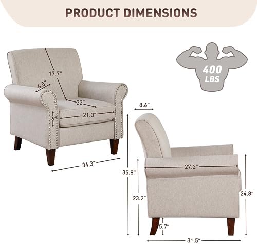 Crafted with high-quality brushed linen cotton, this accent armchair offers breathability and skin-friendly, ensuring exceptional comfort.