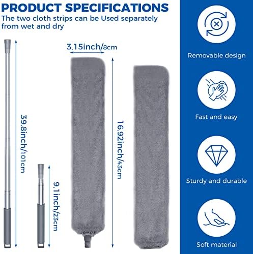 Microfiber duster with extension pole, can be extended 60 inch, you can reach all those hard-to-reach places without using a ladder or stool.Great for cleaning the dust of high places.