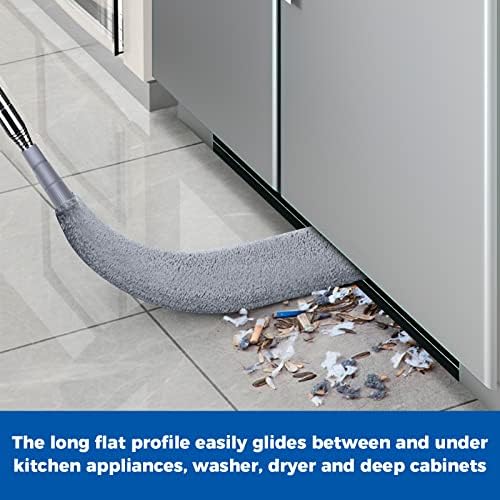 Reach where your ordinary duster can't go with this flexible duster. Its flat shape is perfect to reach tight spaces between and under heavy household items like the refrigerator, drying and washing machines, shelves, and more! Use wet or dry.