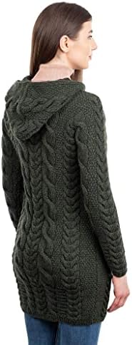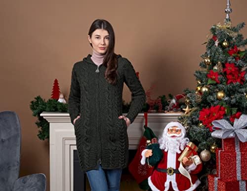 Stay warm and fashionable this fall and winter with this Aran Cable Knit Hooded Zip Cardigan. This Cardigan is made of 100% Merino wool, which will keep you insulated and comfortable outside in the cold with its warmth, moisture-wicking breathability, and rich softness. Giving this piece its fresh style versatility and practicality is a hoodie that can be worn up or down. The full zipper and side pockets also bring chicness and practicality, as the zipper is perfect for quickly layering up or down and the pockets are convenient for holding small items or warming the hands. This hoodie is perfect for everyday wear and will definitely become a wardrobe favorite!