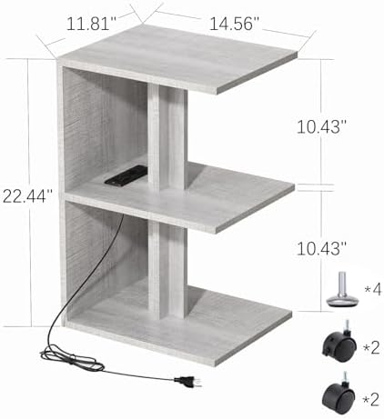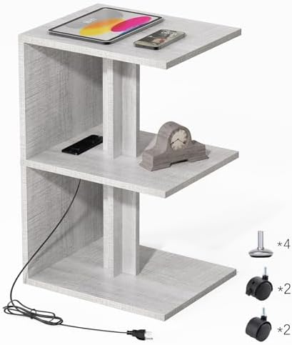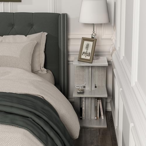 FROMJBEST Set of 2 Nightstand with Charging Station For Small Spaces, End Table Side Table for Living Room ,3 Tier Sofa Bedside Tables Bedroom (Grey)