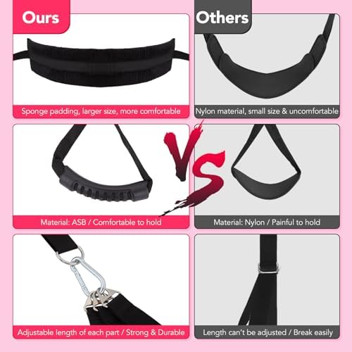 Very solid swing, with a good variety of options from the extra pieces. The cuffs are fairly comfortable as well.Only issue is the thigh brace and attached strap are too long for some of the suggested uses with someone shorter.One of the clips arrived broken but I was able to find the customer support website and send a ticket. They responded within a day and offered me a couple options. Super fast and good customer support.