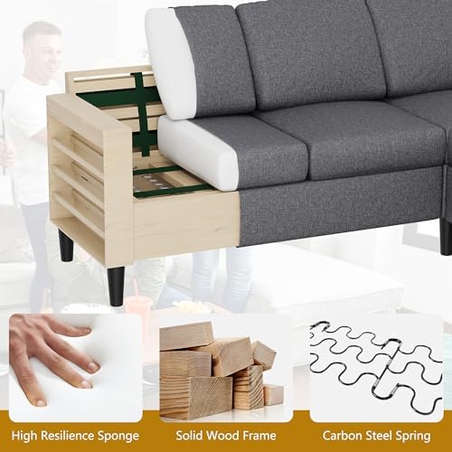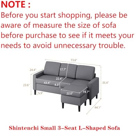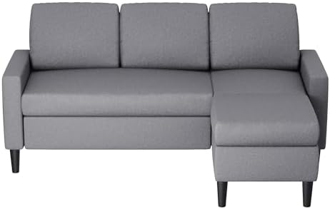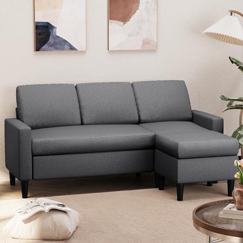 Shintenchi 74" Convertible Sectional Sofa Couch, Small 3-Seat L-Shaped Sofa with Modern Linen Fabric Upholstered, Space-Saving Sofa with Reversible Chaise for Living Room Apartment(Dark Gray)