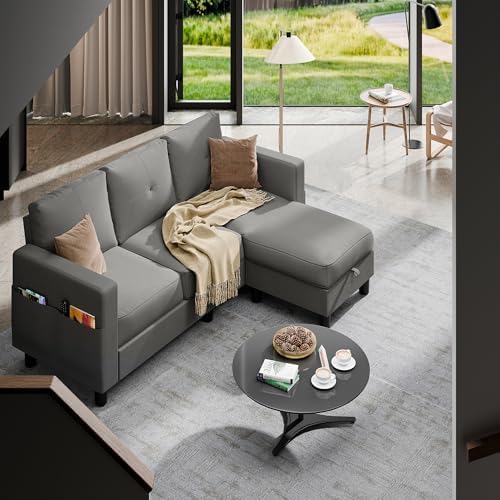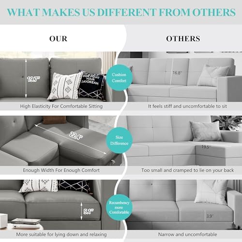 Shintenchi Convertible Sectional Sofa Couch, Modern Linen Fabric L-Shaped, 3-Seat Sofa Sectional with Storage Function Ottoman/Armrest Reversible Chaise for Living Room and Small Space (Light Gray)