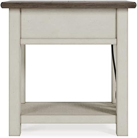The Signature Design by Ashley Bolanburg Farmhouse Chair Side End Table is a charming addition to my living area. Its light brown and whitewash finish perfectly captures a rustic farmhouse aesthetic, enhancing the room's cozy vibe.Build Quality: Sturdy and well-crafted, it stands firm and functional, ideal for daily use.Size and Functionality: Compact yet spacious, it comfortably holds essentials like a lamp and books. The added drawer and shelf are great for extra storage.Versatility: Beyond just a side table, it works wonderfully as a nightstand or a hallway accent piece.Assembly: Assembling was a breeze with clear instructions, requiring no additional tools.Value: The table's quality and utility make it a great investment for its price.In summary, this end table is a blend of style, utility, and durability, making it a fantastic choice for anyone seeking a practical piece with a farmhouse flair.