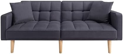 Ksportmf 71.5" Sleeper Sofa Tufted Futon Sofa Bed Modern Folding Loveseat Couch Fabric Convertible Recliner Lounge with Wooden Legs for Living Room,Office,Apartment,Small Places