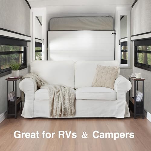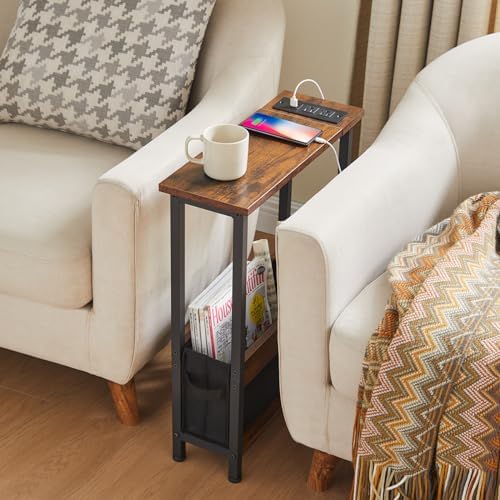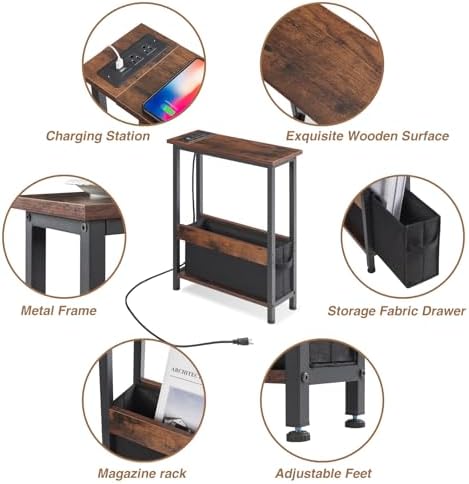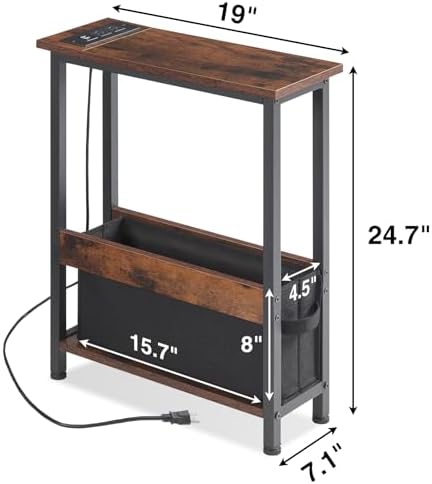 Bought this because I was crowding my dresser with books and electronics I couldn’t reach. This table fits in the small gap between my bed and dresser so everything is easier to reach- about the width of a large book as show in the photos. Easy to assemble! Took about 30mins with a small power screwdriver. Storage can hold 6-7 books of various sizes, plus power chords, remotes etc. Super functional. The small multi outlet is handy! I can plug in my phone, laptop, a usb powered reading lamp that clamps on the side of the table top or dresser. Lightweight but sturdy and stable, no rocking or wiggling once assembled. Highly recommend getting this in your style.