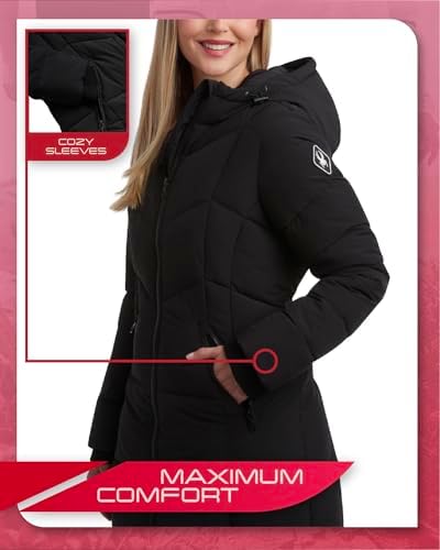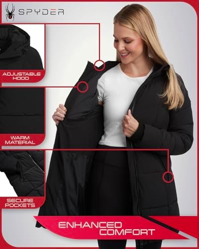 Spyder Women's Puffer Jacket - Cozy Hooded Long Puffer Jackets for Women with Hand Pockets - Soft Stretch Bubble Jacket S-XL