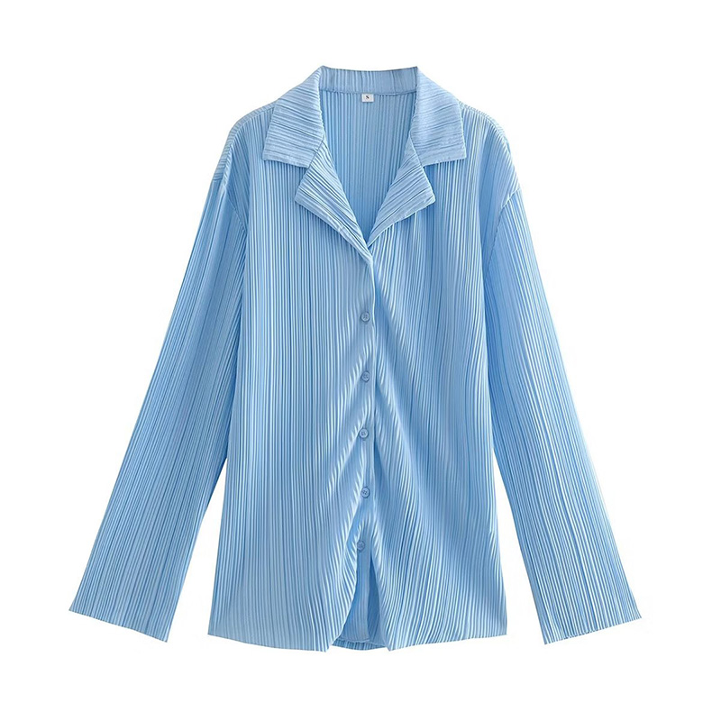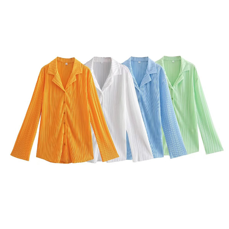 summer four-color loose women's tops lapel long-sleeved single-breasted pleated blouse