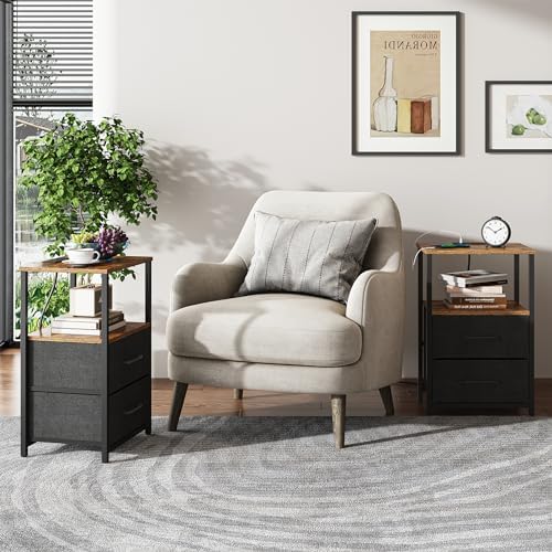 These two end tables were very easy to assemble. They came with high quality materials, and even extra screws incase you loose or drop one.The height, and size are are as described in the listing, and they fit perfectly. I have a tall full sized bed and they are just the right height for lamps or easy to reach items you want while in bed. The drawers are just the right size for everything I need too!The furniture is lightweight and easy to move, and it was easy to assemble, everything aligned perfectly and was manufactured well.