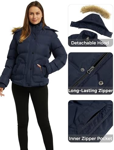 The women’s waterproof winter jacket has a waterproof fabric with an index of 3000mm that keeps you dry and comfortable all day, you can continue your outdoor activities on heavy fog, rainy, or snow days. The waterproof puffer coat for women provides warmth and keeps you dry in damp or cold weather. This means you can enjoy ice skating at the park or hiking around the Rockies without getting distracted by cold winds or chills.