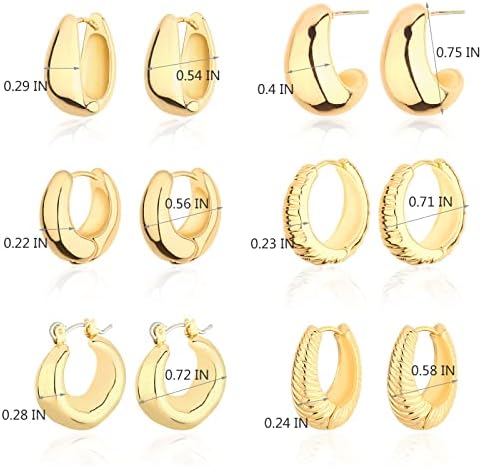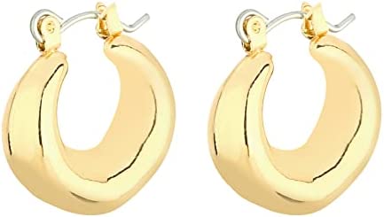 Wgoud Chunky Hoops Earrings with Shiny Thick Rhodium Plating Colors.