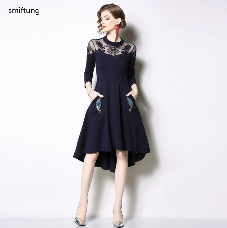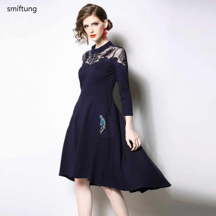 wholesmiftung Spring dress / Autumn casual dress / color blue / Three Quarter sleeve