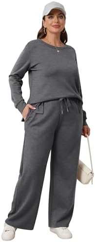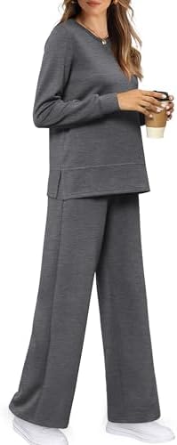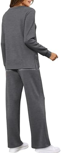 WIHOLL Women's 2 Piece Lounge Sets Sweatshirt Casual Travel Outfits Fashion Wide Leg Tracksuit Cozy Sweatsuits