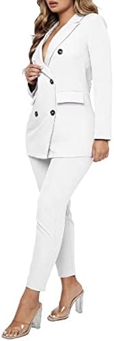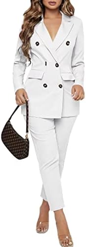 Women Double Breasted Blazer Set Formal 2 Piece Pants Outfits Long Sleeve Bussines Suit Set for Work Office
