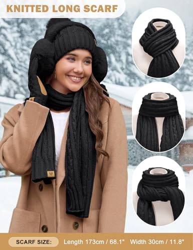 HEEKPEK Women Winter Hat Long Scarf Touchscreen Gloves Earmuffs Socks 5 in 1 Set