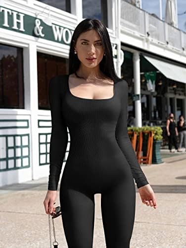Women Workout Seamless Jumpsuit Yoga Ribbed One Piece Long Sleeve Leggings Romper