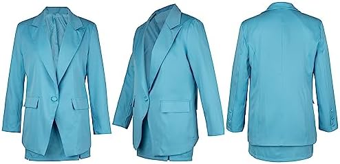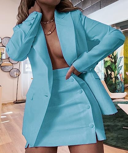 Women's 2 Piece Blazer and Skirt Suits, Open Front Blazer Jackets + Side Slit Mini Skirts