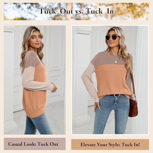Long Sleeve Shirts for Women 2024 Color Block Crewneck Loose Pullover Tops