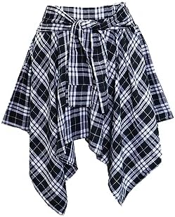 Women's Plaid Skorts Skirts - High Waisted Tie Front Pleated Summer Asymmetrical Skirt with Shorts