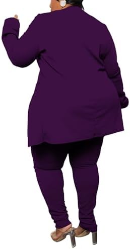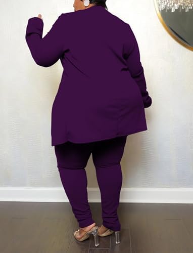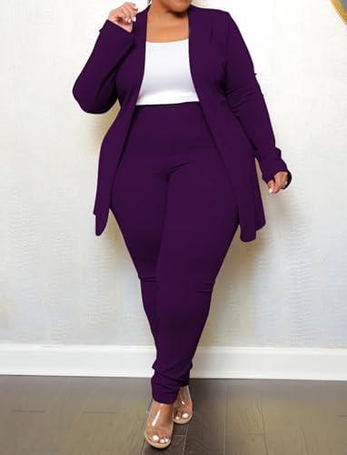 Sexy Plus Size 2 Piece Outfits for Women Long Sleeve Solid Blazer with Pants Casual Elegant Business Suit Sets