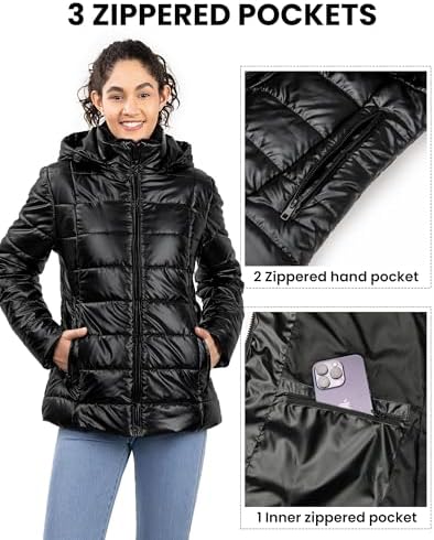 Women's Winter Coat Down Jacket, Puffer Jackets Warm Hooded Coat Softshell Outwear Pockets Parka