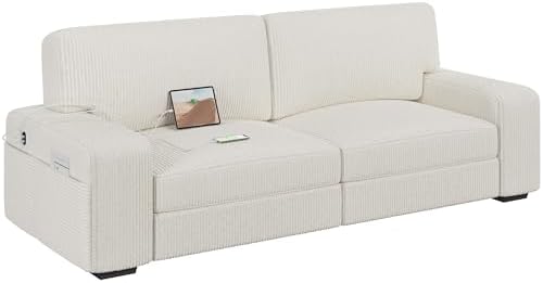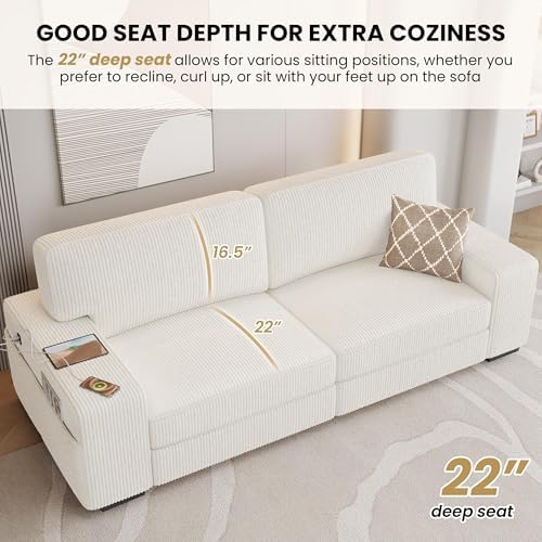Materials Polyester corduroy fabric, foam, solid wood, plywood, plastic, springs Overall Dimensions 83.5″ W × 32″ D × 33″ H Maximum Weight Capacity 600 lb Ground Clearance 2.4″ Seat Size 68 × 22″ (WxD) Seat Height 17.5″
