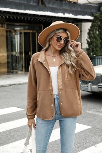 Women Solid Color Jackets Long Sleeve Sherpa Fleece Coat Stand Collar Outwear Jackets With Pockets