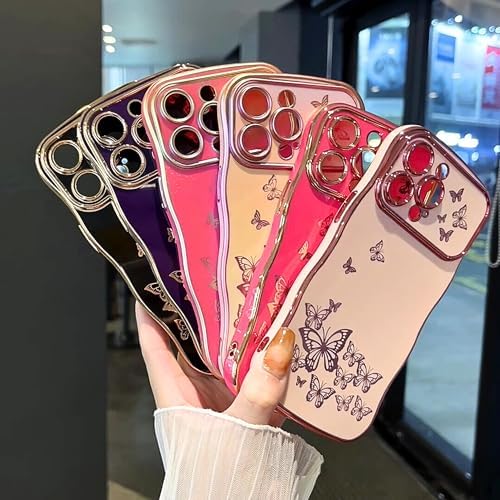 ZTOFERA for iPhone 14 Case for Girl Women, Cute Curly Wave Frame with Luxury Plating Butterfly Pattern, Soft TPU Gold Edge Shockproof Raised Lens Protection Phone Case for iPhone 14, Dark PurpleRecommendations